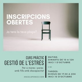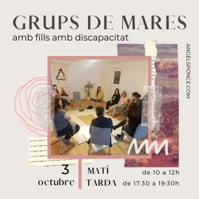 Dijous 03 d’octubre, de 17:30 a 19:30h, a les instal·lacions de l’Escola Paideia (carrer del Montnegre 36-42), Grup de Mares a càrrec de la terapeuta familiar Àngels Ponce. Més info a: https://angelsponce.com/grupos-de-apoyo/ o a través del correu electrònic escoladefamilies@fundaciopaideia.org