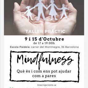 L’Escola de Famílies Paideia obre les portes aquest curs amb un Taller de Mindfulness. Durant dos sessions gratuïtes, a càrrec de la terapeuta familiar Àngels Ponce, el 9 i 15 d’octubre (obligatori assistir a les dues sessions, es prega compromís d’assistència