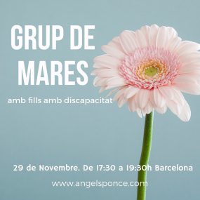 Proper dijous 29 de Novembre, a les instal·lacions de l’Escola Paideia (carrer del Montnegre 36-42), Grup de Mares a càrrec de la terapeuta familiar Àngels Ponce. Més informació a https://angelsponce.com/contact/